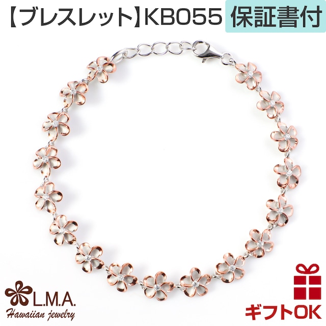 ワイアンジュエリーブレスレット(kb055) <素材>シルバー925・ロジウム加工・ 一部ピンクゴールドコーティング・クリアキュービックジルコニア <サイズ>全長約19.3cm~約21cm・お花の大きさ:約0.8cm・厚み約0.2cm <詳細>ハワイ直輸入のハワイアンジュエリーブレスレットです。 ぐるっと一周プルメリアが連なっていてまるでレイのようですね。 シルバー素材ですがロジウム加工が施されておりますので比較的お手入れがしやすいです。 プルメリアの花びらのエッジ部分にはピンクゴールドコーティングが施されております。 派手になりすぎず、肌なじみがいいので他のアクセサリーなどとも合わせやすいです。お花の中心部分にはそれぞれクリアカラーのキュービックジルコニアが入っています。動くたびにキラキラ揺れるプルメリアのお花が貴方の手を美しく演出してくれます。 プルメリアのお花は神様にささげるお花と言われており、神聖なお花とされています。 とても良い香りがするかわいいお花でよく髪に飾ったりしていますね。 花言葉は親愛。ロコに愛されるお花はハワイアンジュエリーの中でも不動の人気デザインです。 ちょっとしたお守り代わりに身に着ける方も多いアクセサリーですのでプレゼントなどにもお勧めです。 ジルコニアのお色違いやデザイン違いのブレスレットなどもございますので、ご覧くださいませ。