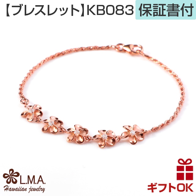 ハワイアンジュエリーブレスレット(kb083) <素材>シルバー925・ 一部ピンクゴールドコーティング <サイズ>長さ:約17.5cm プルメリアの大きさ:約0.7cm・厚み約0.2cm <詳細>ハワイ直輸入のハワイアンジュエリーブレスレットです。 プルメリアのお花が5輪連なったタイプのブレスレットになります。 チェーンの部分はロープチェーンになります。 お色はピンクゴールドコーティングになりますので肌なじみよく、優しい雰囲気です。 プルメリアのお花の真ん中にはさりげなくクリアキュービックジルコニアが入っています。 プルメリアは神様に捧げるお花として大切にされており、ハワイアンジュエリーでも人気のデザインです。 動くたびにキラキラ揺れるプルメリアのお花が貴方の手を美しく演出してくれます。 プルメリアのお花は神様にささげるお花と言われており、神聖なお花とされています。 とても良い香りがするかわいいお花でよく髪に飾ったりしていますね。 花言葉は親愛。ロコに愛されるお花はハワイアンジュエリーの中でも不動の人気デザインです。 ちょっとしたお守り代わりに身に着ける方も多いアクセサリーですのでプレゼントなどにもお勧めです。 ジルコニアのお色違いやデザイン違いのブレスレットなどもございますので、ご覧くださいませ。
