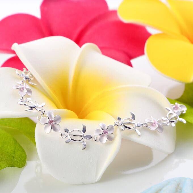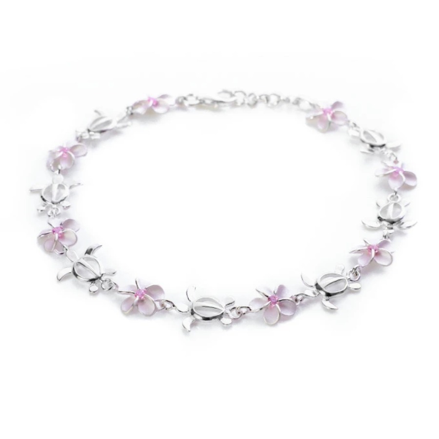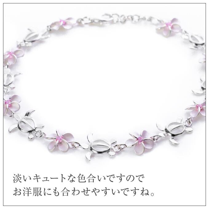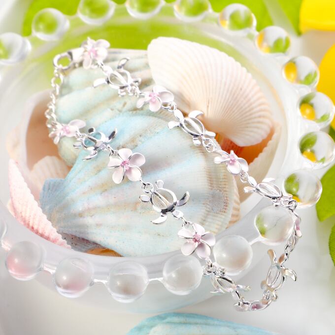 ハワイアンジュエリー ブレスレット シルバー925 ピンク ジルコニア | ホヌ 海がめ HONU 亀 カメ プルメリア 花 花輪 レイ 波 レディース プレゼント 誕生日 記念日 【送料無料】 おしゃれ 人気 ハワジュ バングル カップル ギフト