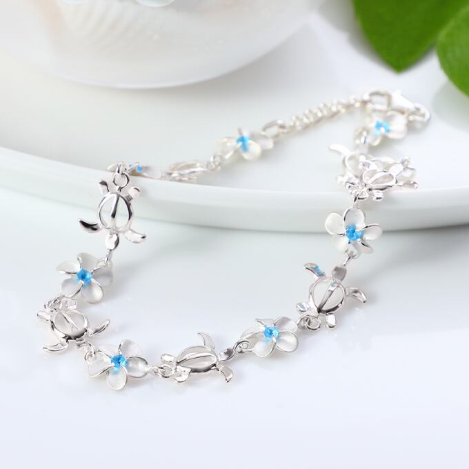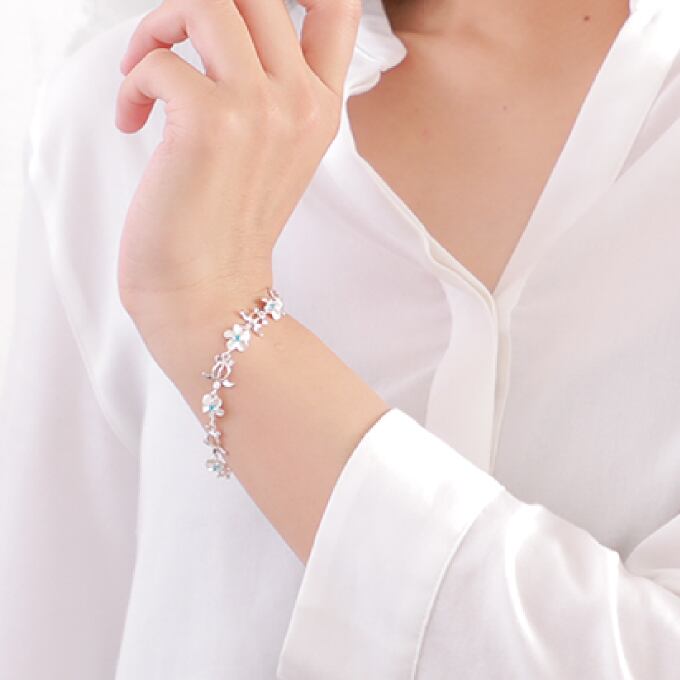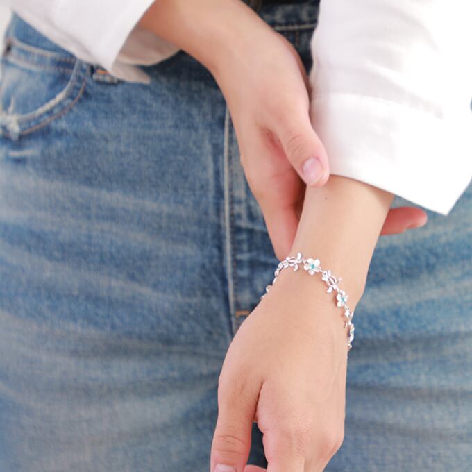ハワイアンジュエリー ブレスレット シルバー925 ブルー ジルコニア | ホヌ 海がめ HONU 亀 カメ プルメリア 花 花輪 レイ 波 レディース ハワジュ バングル 送料無料 カップル ギフト