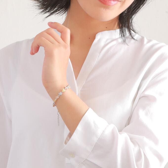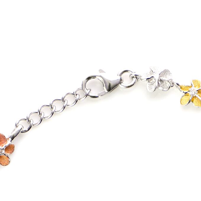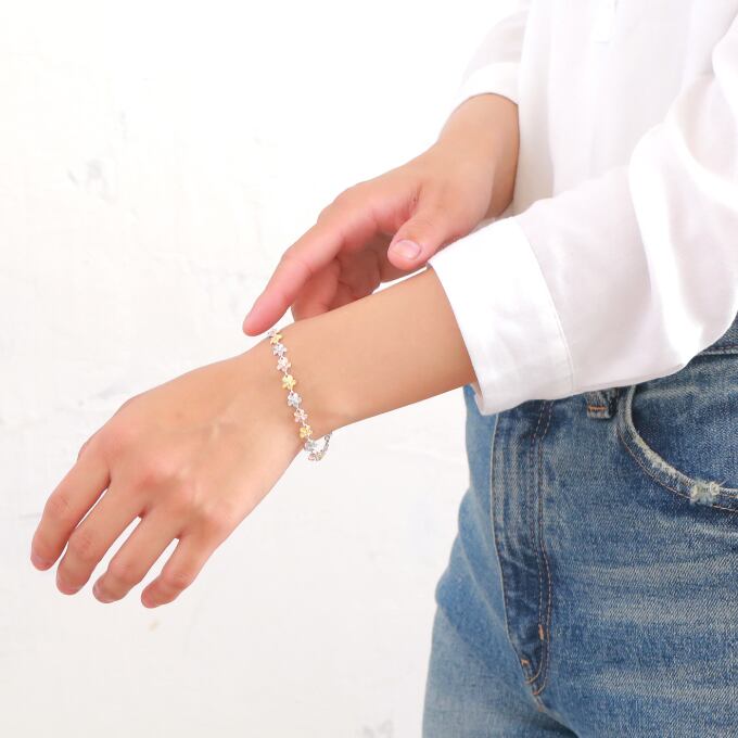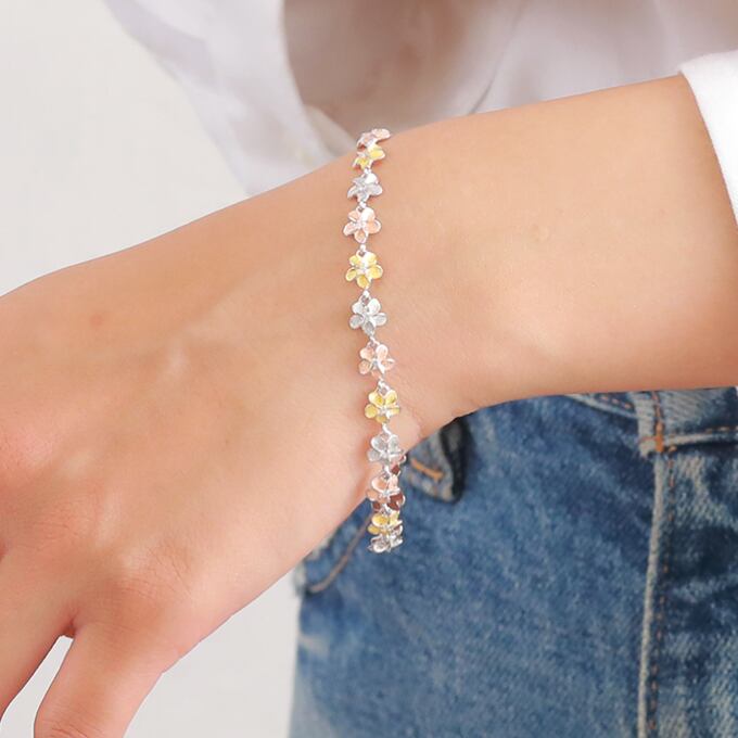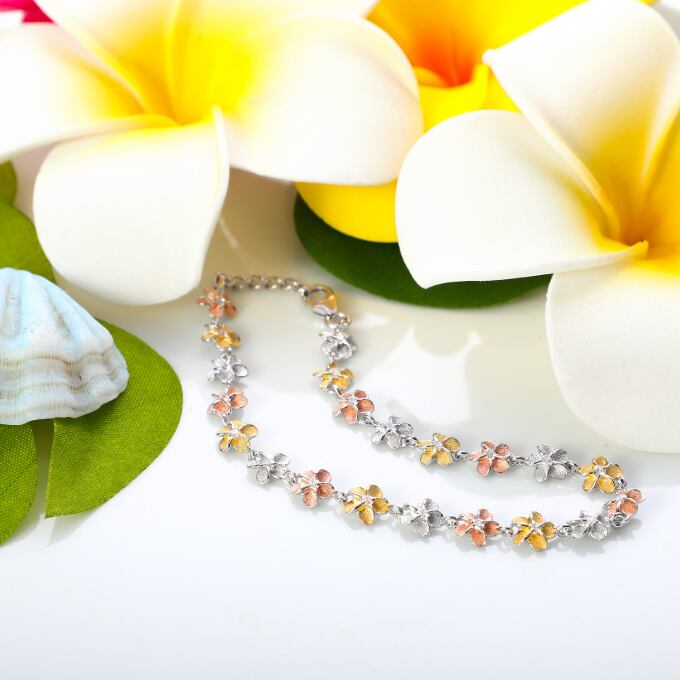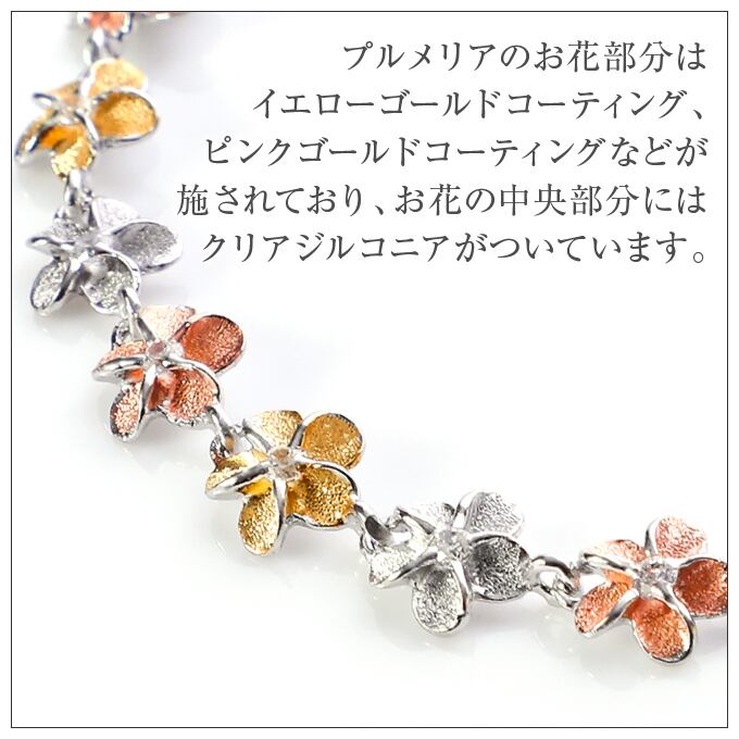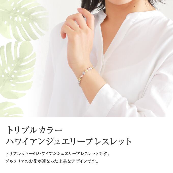 ハワイアンジュエリー ブレスレット シルバー925 イエローゴールド ピンクゴールド コーティング ジルコニア | プルメリア 花 花輪 レイ カラフル トリプルカラー 波 レディース プレゼント 誕生日 記念日【送料無料】 おしゃれ 人気 ハワジュ バングル カップル ギフト