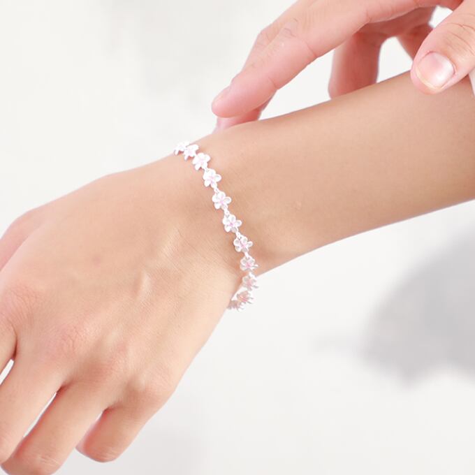 プルメリアのお花が連なっているかわいいデザインのブレスレットになります。