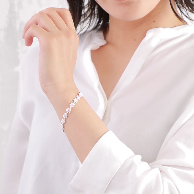 ハワイアンジュエリー ブレスレット シルバー925 ピンク ジルコニア | プルメリア 花 花輪 レイ 波 レディース ハワジュ バングル 送料無料 カップル ギフト