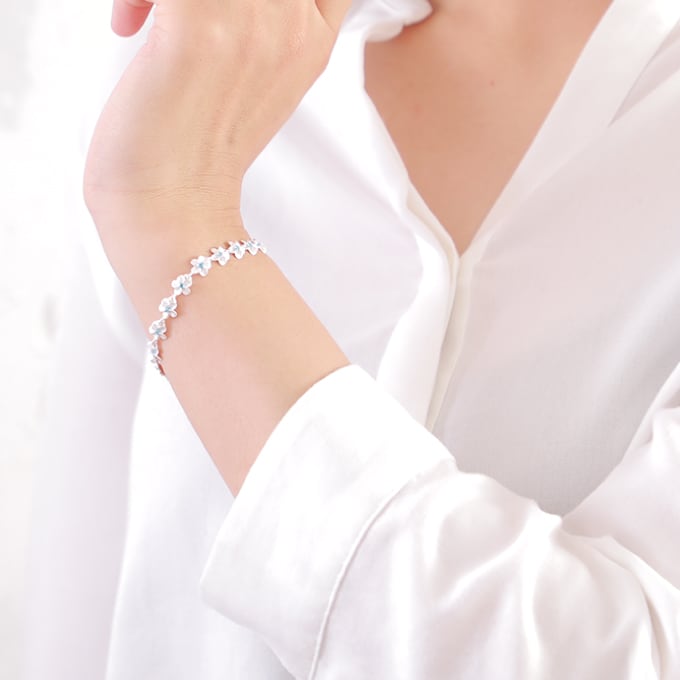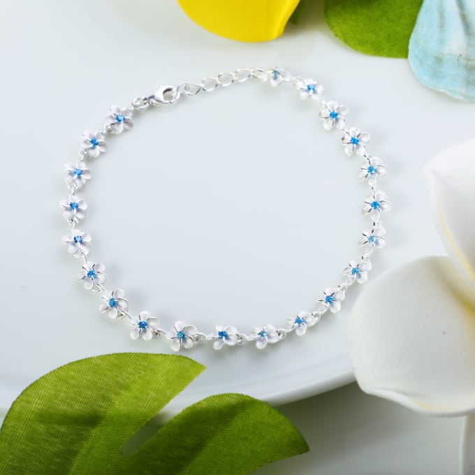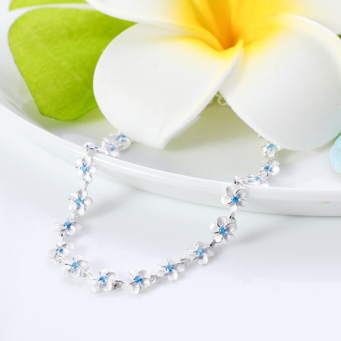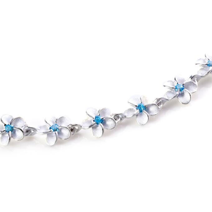 ハワイアンジュエリー ブレスレット シルバー925 ブルー ジルコニア | プルメリア 花 花輪 レイ 波 レディース ハワジュ バングル 送料無料 カップル ギフト