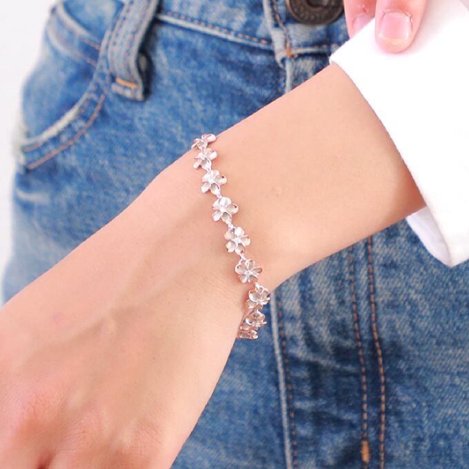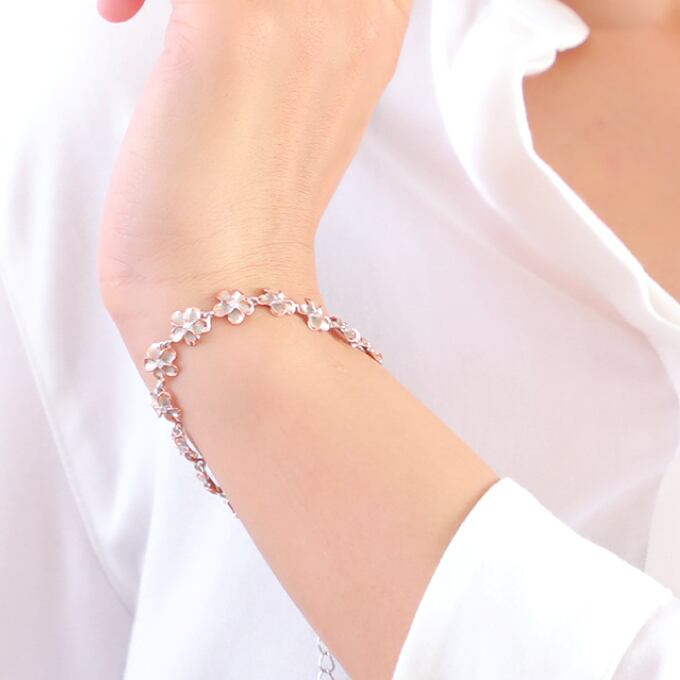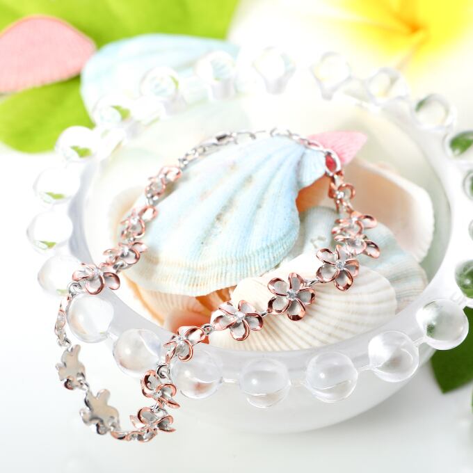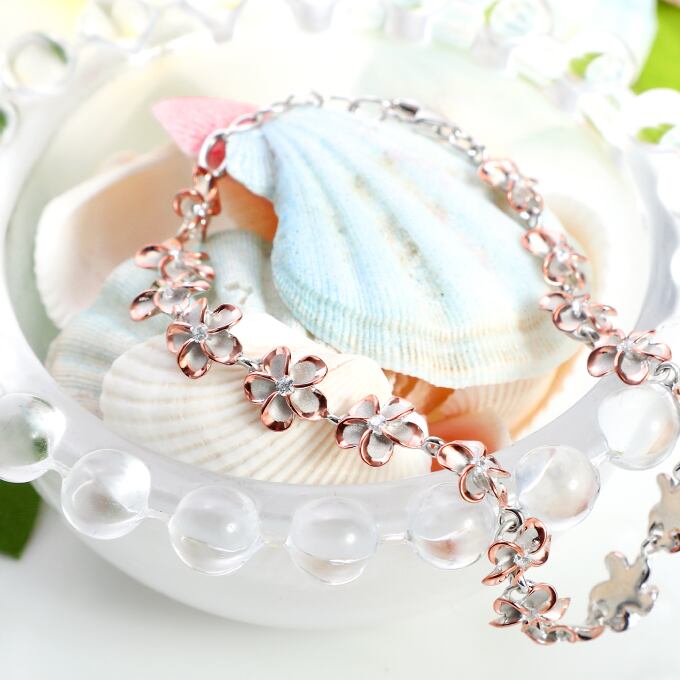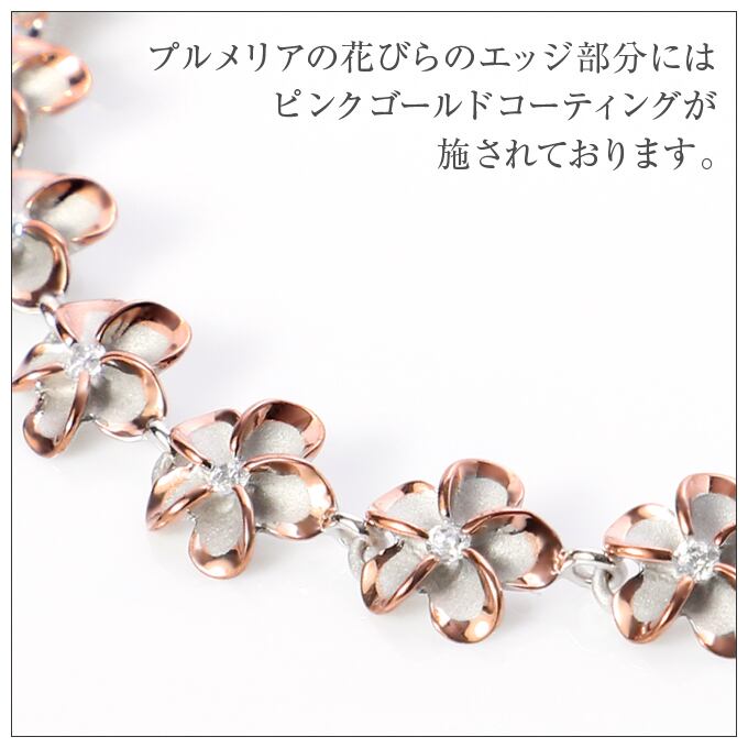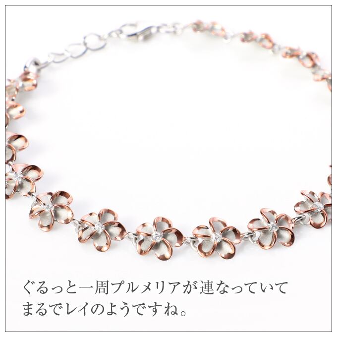 ハワイアンジュエリー ブレスレット シルバー925 ピンクゴールド ロジウム コーティング ジルコニア | プルメリア 花 花輪 レイ 波 レディース ハワジュ バングル 送料無料 ギフト カップル