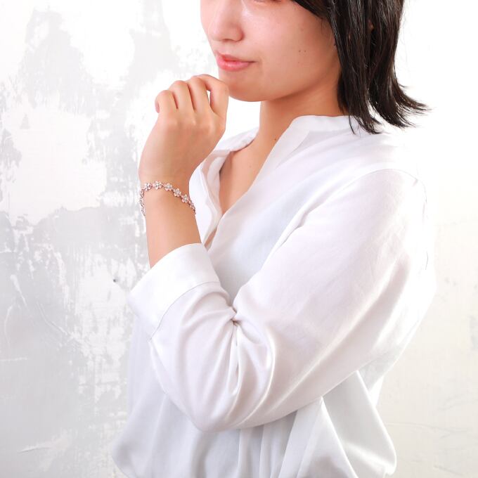 派手になりすぎず、肌なじみがいいので他のアクセサリーなどとも合わせやすいです。お花の中心部分にはそれぞれクリアカラーのキュービックジルコニアが入っています。動くたびにキラキラ揺れるプルメリアのお花が貴方の手を美しく演出してくれます。