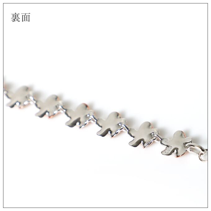 シルバー素材ですがロジウム加工が施されておりますので比較的お手入れがしやすいです。