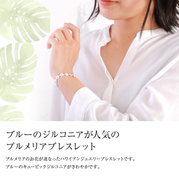 ハワイアンジュエリー ブレスレット シルバー925 ブルー ジルコニア | プルメリア 花 花輪 レイ 波 レディース ハワジュ バングル 送料無料 ギフト カップル