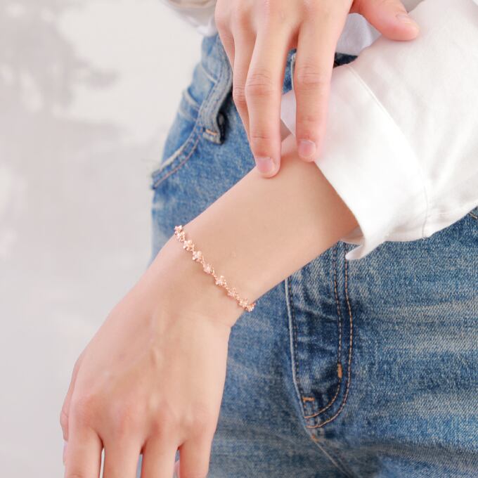 シルバー素材ですがピンクゴールドコーティングが施されておりますので、肌なじみがよいので