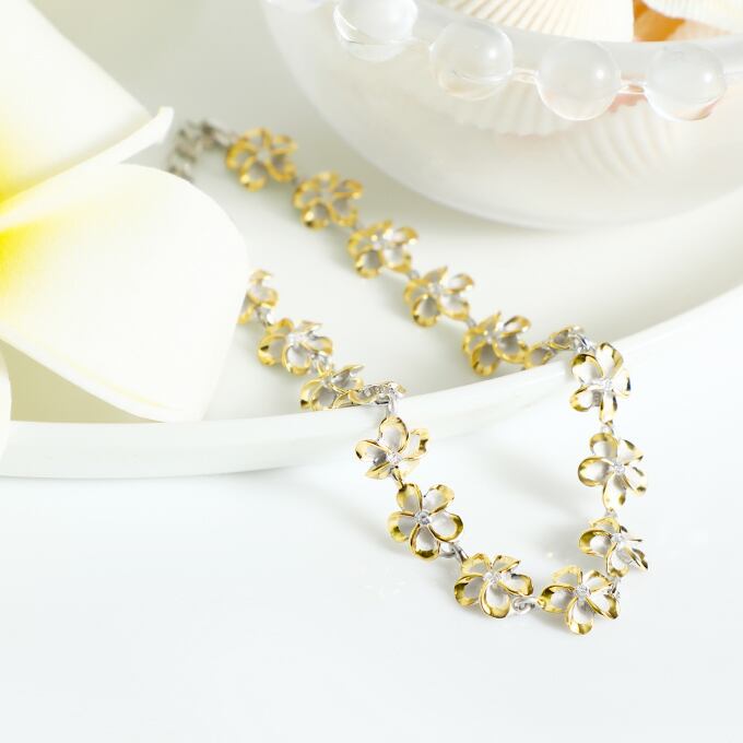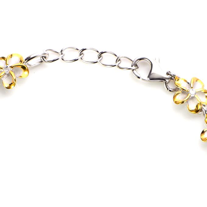 ハワイアンジュエリー ブレスレット シルバー925 イエローゴールド ロジウム コーティング ジルコニア | プルメリア 花 花輪 レイ 波 レディース プレゼント 誕生日 記念日 【送料無料】 おしゃれ 人気 ハワジュ バングル カップル ギフト