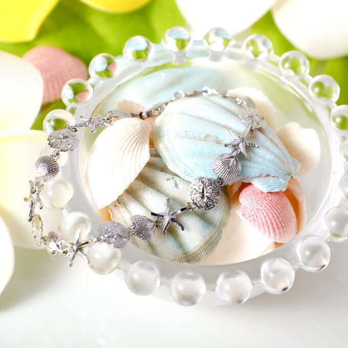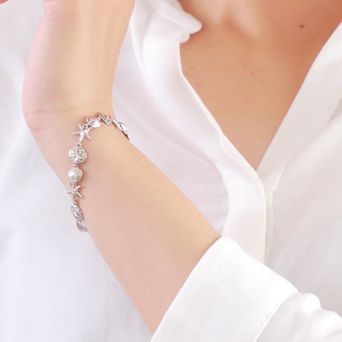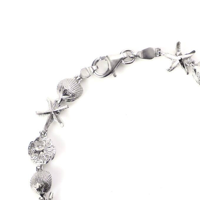 ハワイアンジュエリー ブレスレット シルバー925 ロジウム コーティング | 海 モチーフ シェル 貝 ヒトデ スターフィッシュ サンドダラー コイン プルメリア 波 レディース プレゼント 誕生日 記念日 【送料無料】 おしゃれ 人気 ハワジュ バングル カップル ギフト
