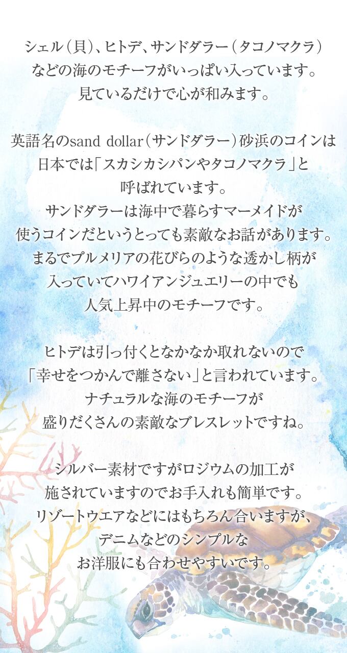 ナチュラルな海のモチーフが盛りだくさんの素敵なブレスレットですね。