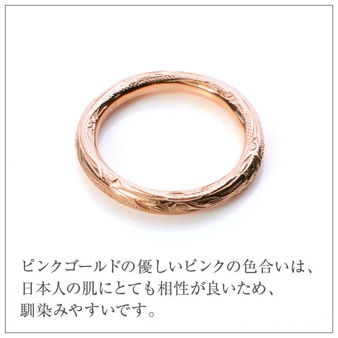 ピンクゴールドカラーは、ピンクゴールドがもつ優しいピンクの色合いは、日本人の肌にとても相性が良いため、馴染みやすいです。