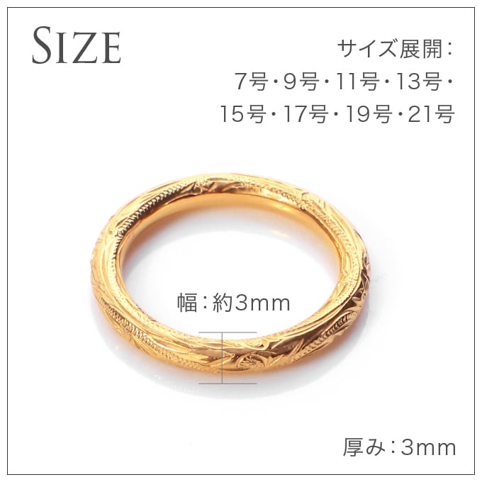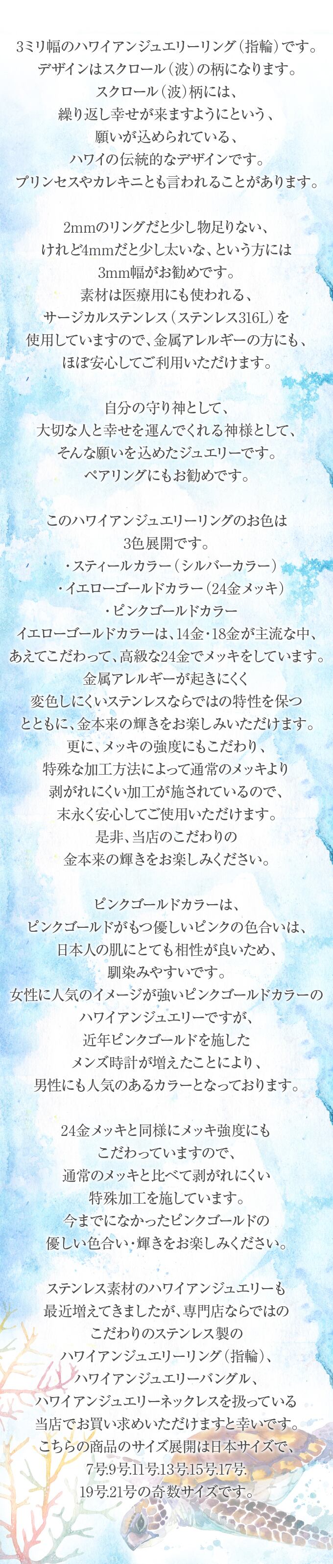 3ミリ幅のハワイアンジュエリーリング(指輪)です。デザインはスクロール(波)の柄になります。