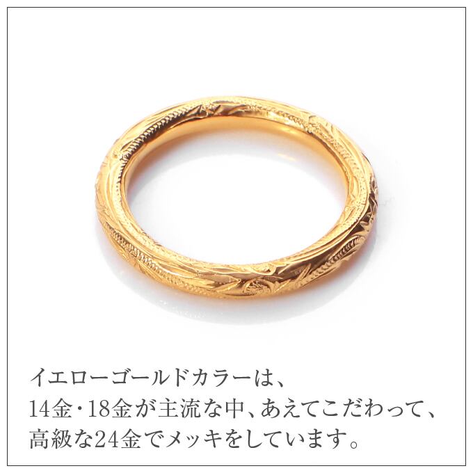 イエローゴールドカラーは、14金・18金が主流な中、あえてこだわって、高級な24金でメッキをしています。