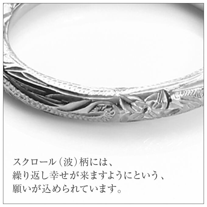 スクロール(波)柄には、繰り返し幸せが来ますようにという、願いが込められている、ハワイの伝統的なデザインです。プリンセスやカレキニとも言われることがあります。