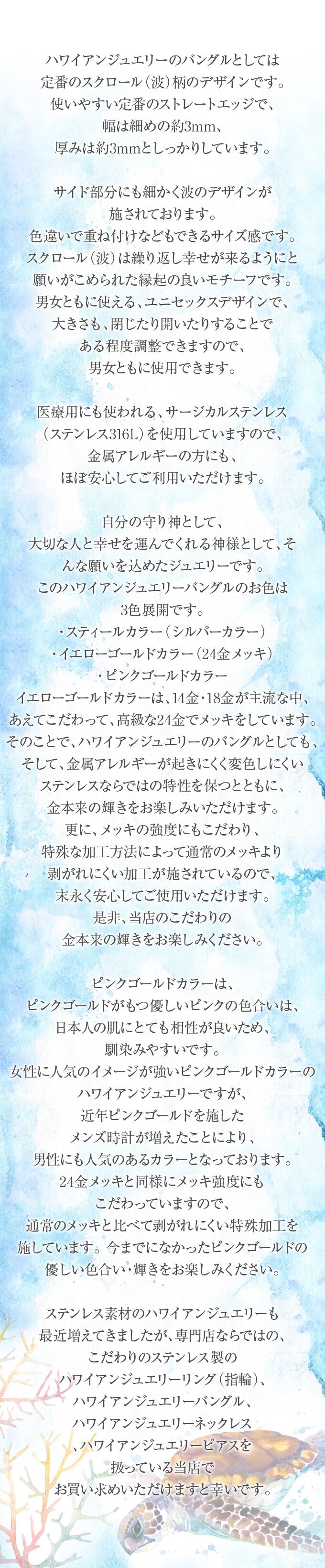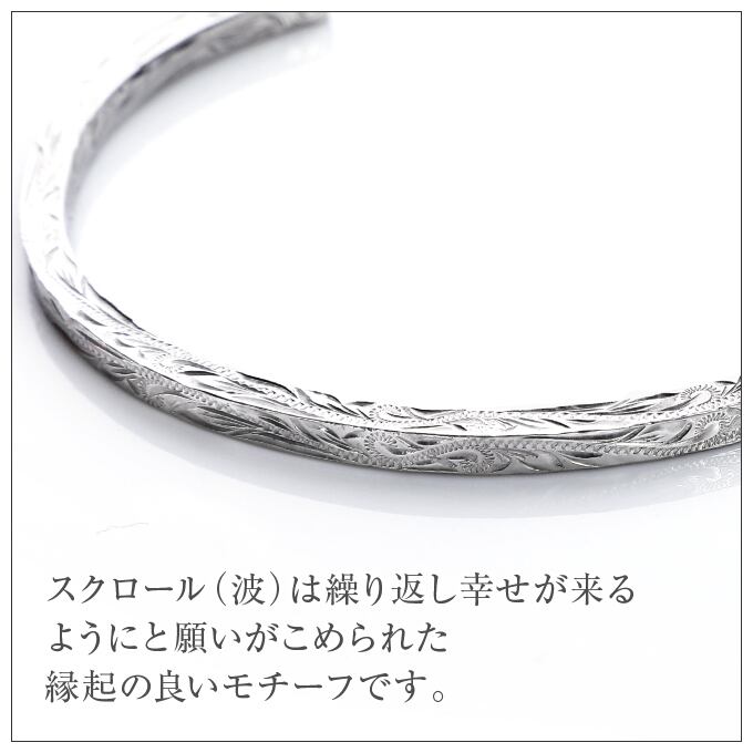 ハワイアンジュエリーのバングルとしては定番のスクロール(波)柄のデザインです。